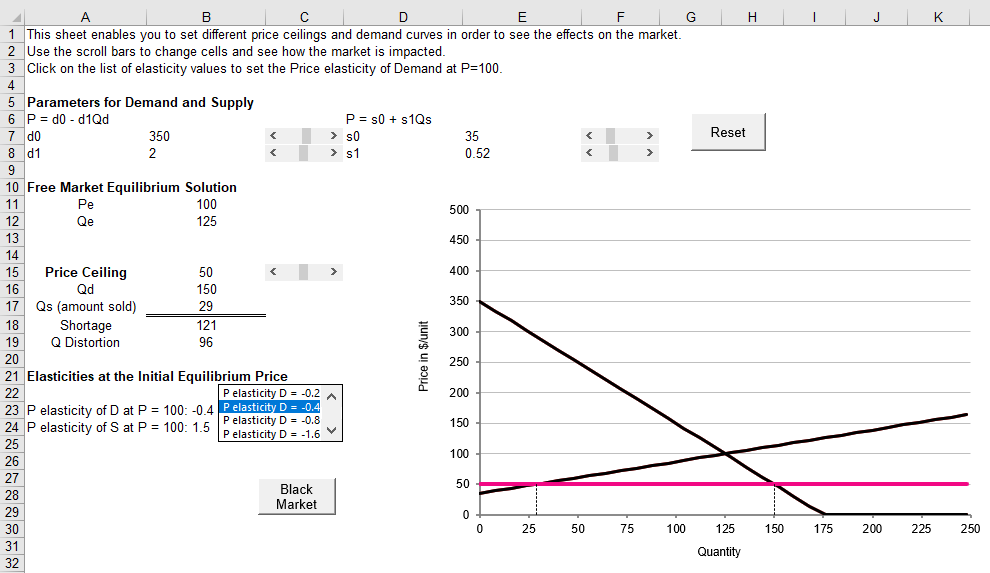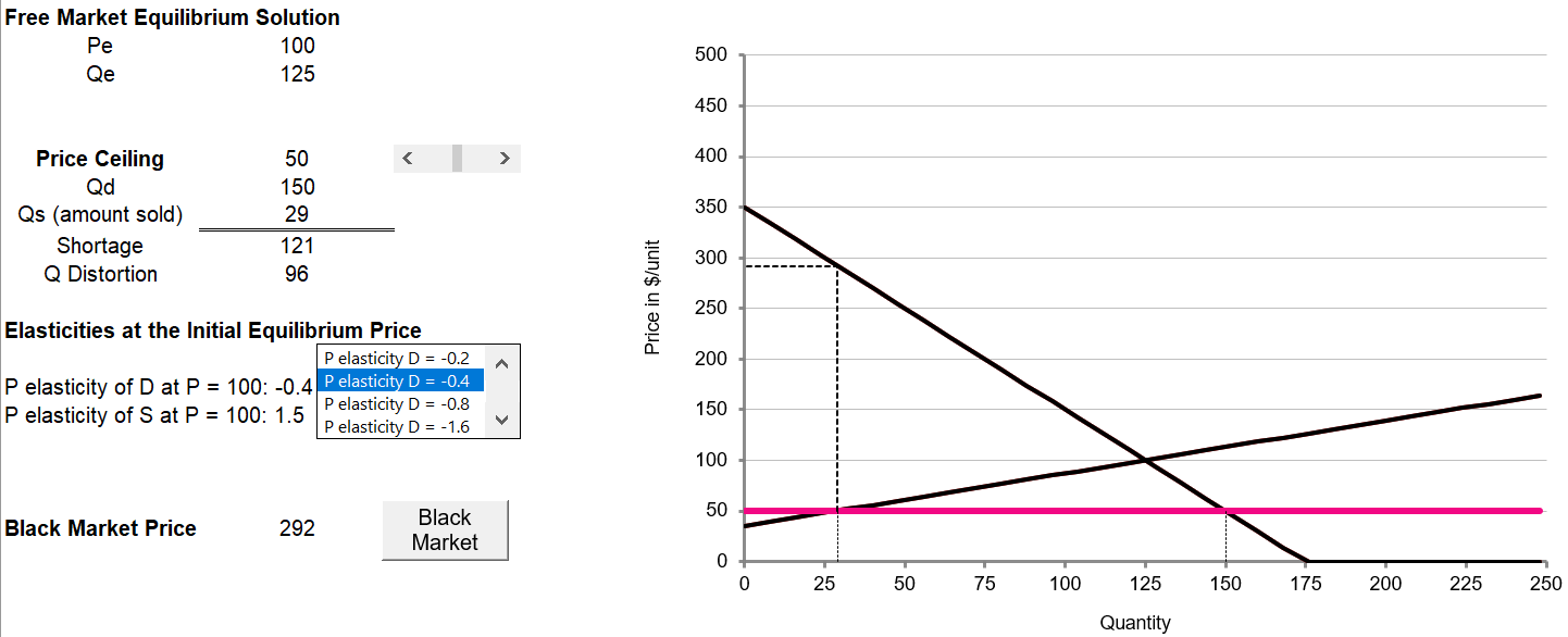 - Compute the difference between the price ceiling and the black market price as a percentage of the price ceiling value