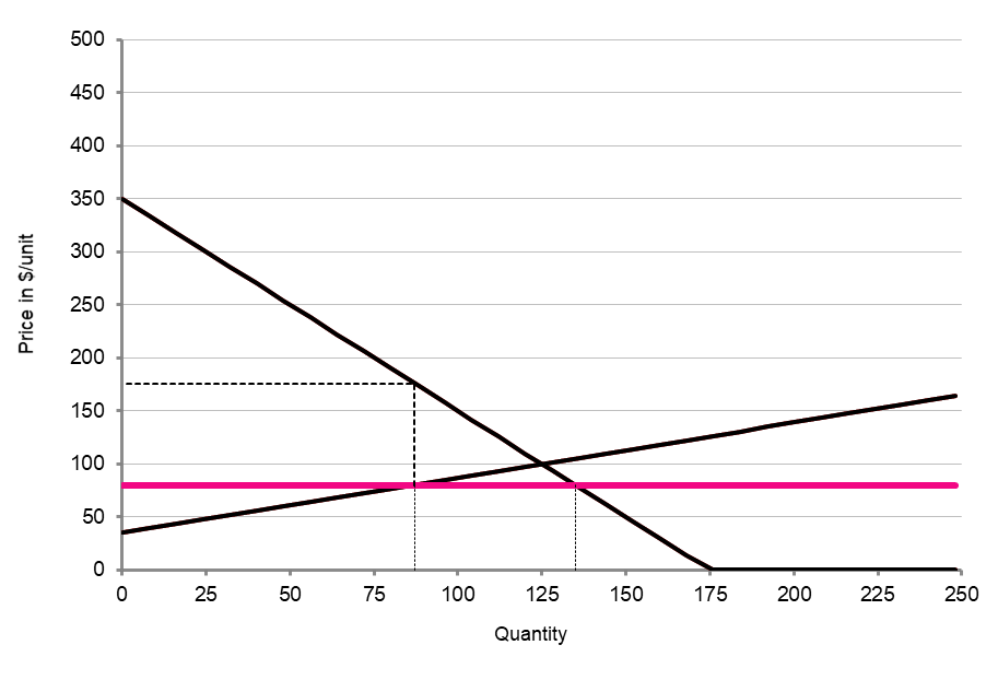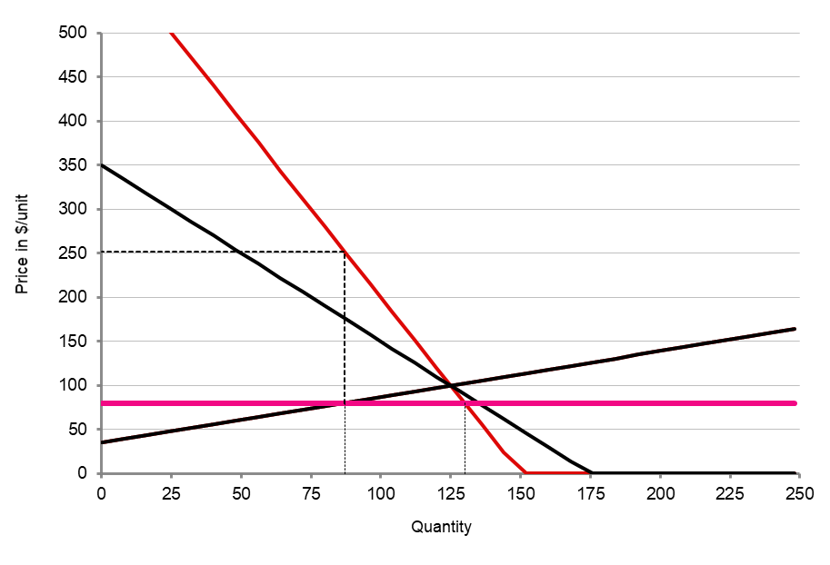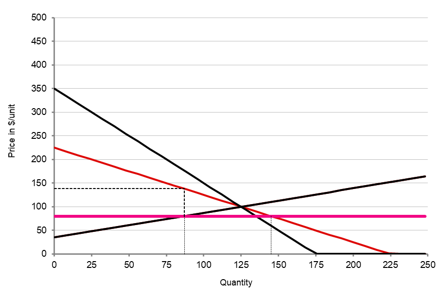 What is the distortion now? Is this better or worse than $50? - Use a figure (can be a screenshot) & your ability to change the price elasticity of demand (PEoD) to explain the relationship between the size of the distortion and the PEoD