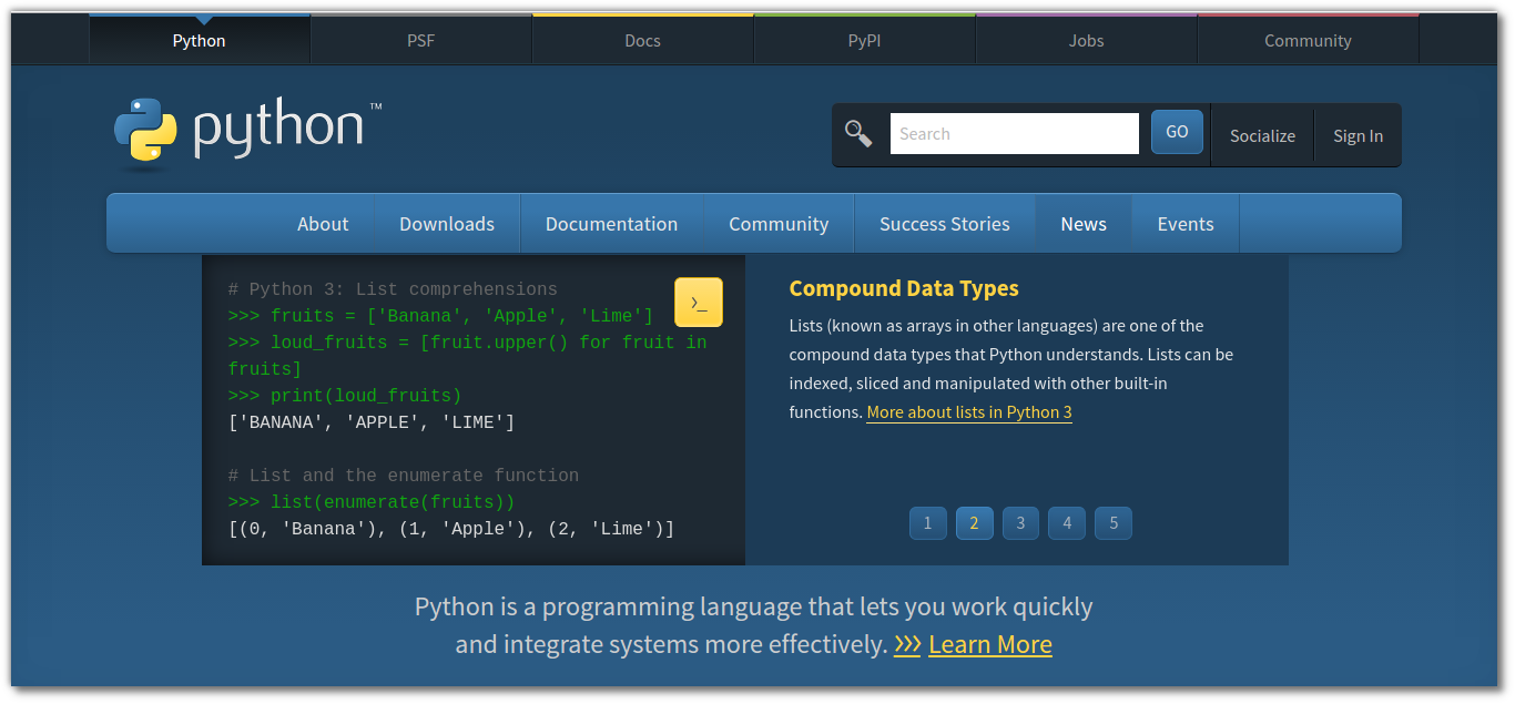 Python es valorado mayormente por su sintaxis elegante y código legible.