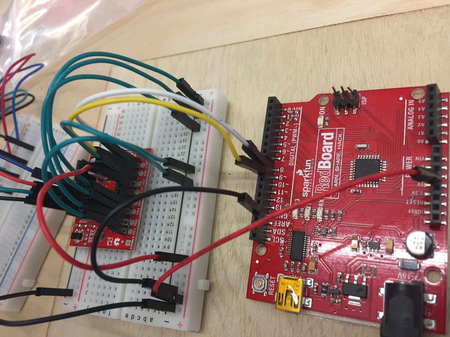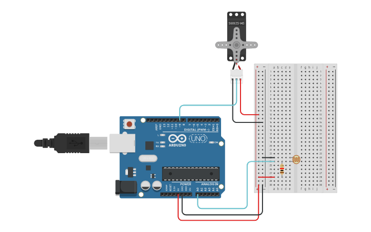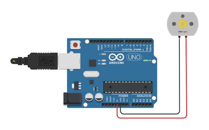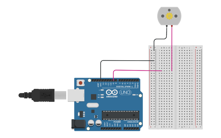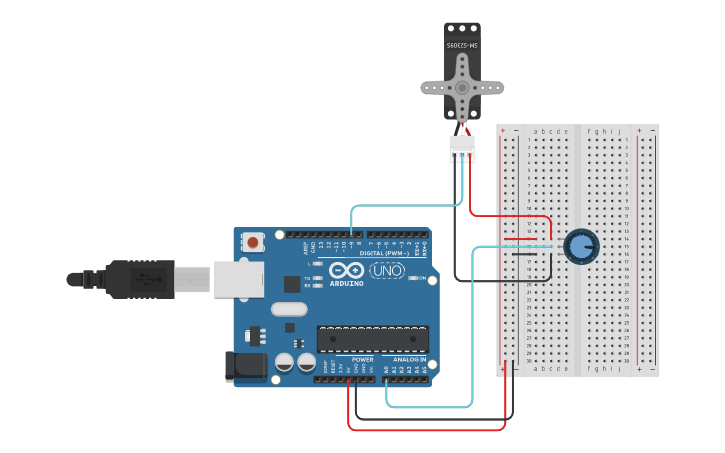 Arduino A0 and D~9, 5V, and ground, and a potentiometer knob