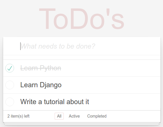 To do that, we will shuffle a SingleObjectMixin which will provide us with the ToDo we need to update, with a RedirectView which will send us back to the homepage.