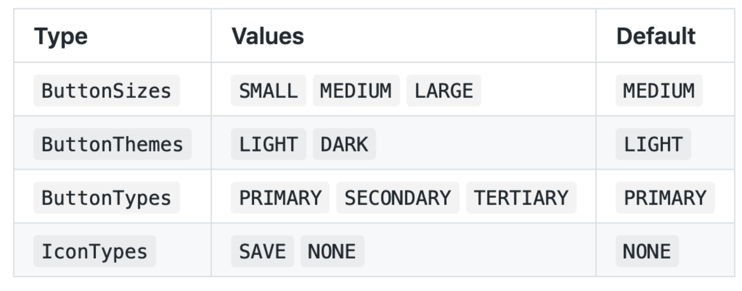 size: PropTypes.oneOf(Object.values(ButtonSizes)),