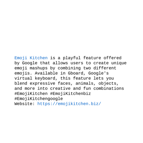 Emoji Kitchen is a playful feature offered by Google that allows users to create unique emoji mashups by combining two different emojis. Available in Gboard, Google's virtual keyboard https://emojikitchen.biz/