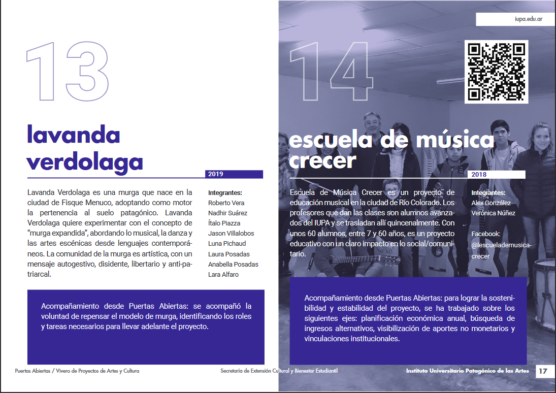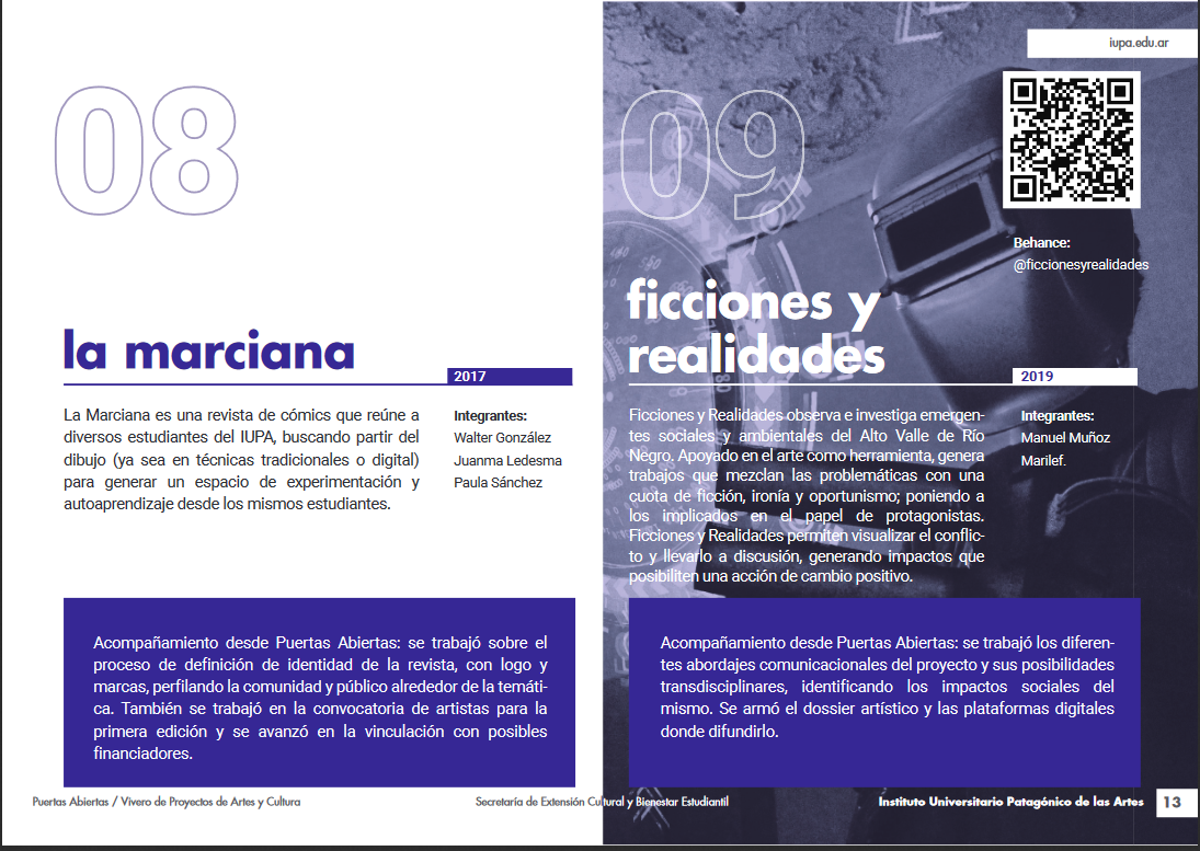 Un espacio de acompañamiento, para potenciar y dar sostenibilidad a los diversos proyectos de la comunidad creativa del Instituto Universitario Patagónico de las Artes (IUPA).