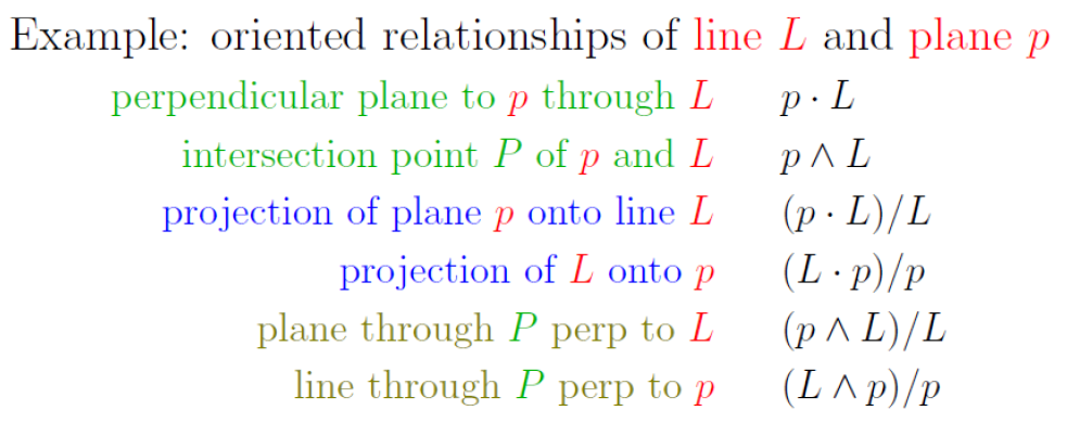 Example: \(\Big(\mathbf{e}_1 \cos(\phi/{\small 2}) + \mathbf{e}_2\sin(\phi/{\small 2}) + \delta \mathsf{e}\Big) \wedge \mathbf{e}_1 = \underbrace{\mathbf{e}_2 \wedge\mathbf{e}_1\,\sin(\phi/{\small 2})}_{direction} + \underbrace{\delta \, \mathsf{e} \wedge \mathbf{e}_1}_{location}\)