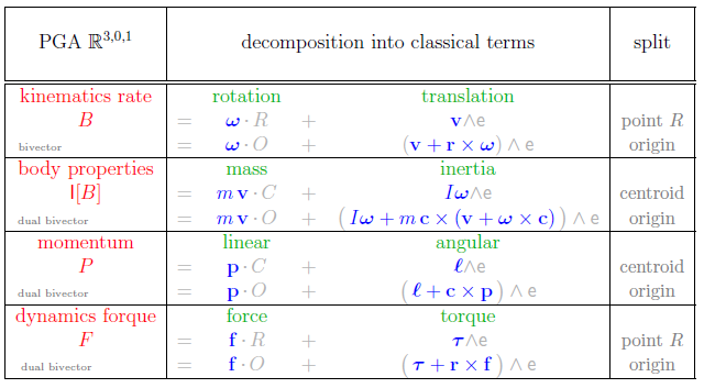 With both total momentum and total forque in the same format of \((d-1)\)-vectors, we are ready to work with Newton/Euler in a geometric, coordinate-free way, in any dimension.