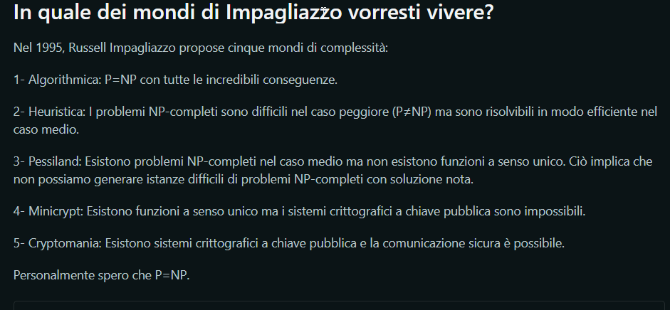 Se si riuscirà ad avere un computer quantistico, saremo in Algorithmica! Stato attuale Cryptomania!