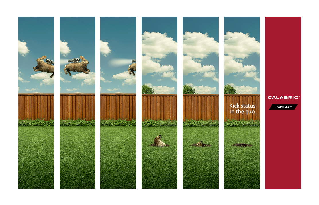 The following integrated campaign sought to build brand awareness and, perhaps most important, inspire and build interest amongst industry change makers looking to accelerate their business's performance in fresh and unconventional ways. We spoke to our audience as people, and not just professionals. We presented the brand absent of industry conventions. Through print, video, digital and non-traditional engagement, we disrupted the B2B landscape and broke away from the herd, leaving Calabrio's archaic competitors in the dust.