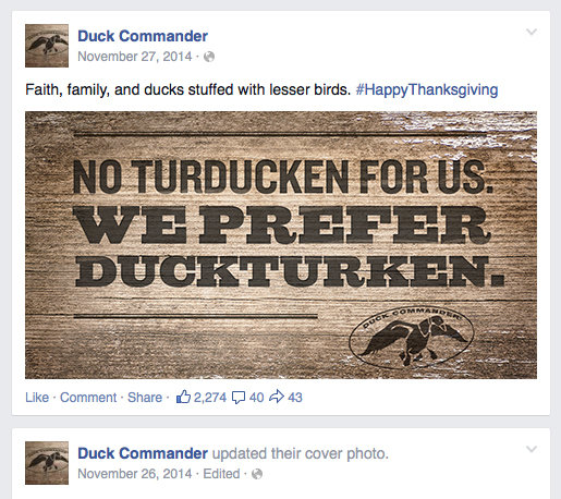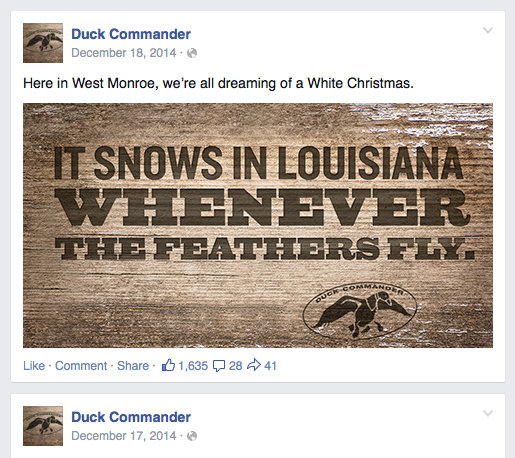 Duck Commander has been a family-focused business rooted in ingenuity, craftsmanship and Southern family values since 1972. Over the last two years—with the advent of the Duck Dynasty TV franchise—the Duck Commander brand had been overshadowed by the celebrity of the series. Personality-driven promotion was reserved exclusively for the Duck Dynasty franchise, while Duck Commander consumer engagement focused heavily on promotional, value-driven product messaging. This posed long-term risk to the Duck Commander brand.