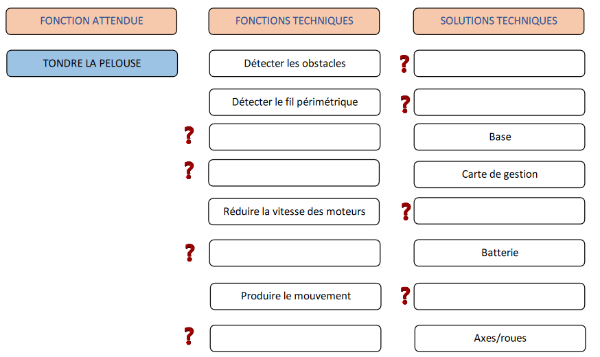 4 - Complète le schéma fonctionnel du robot tondeuse