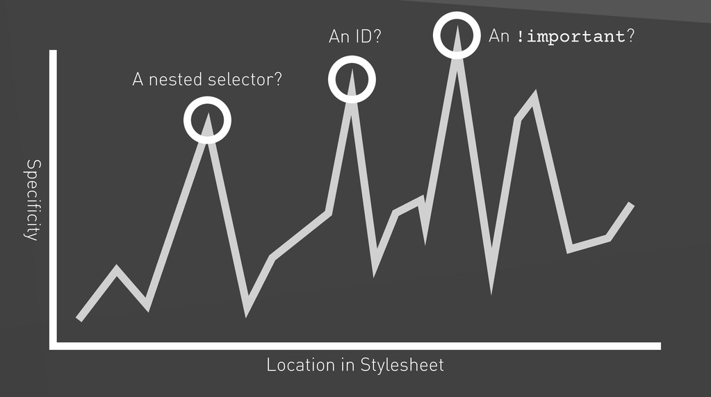 La especificidad genera un puntaje dependiendo del tipo de selector. El valor acumulado, se aplica o no la declaración: