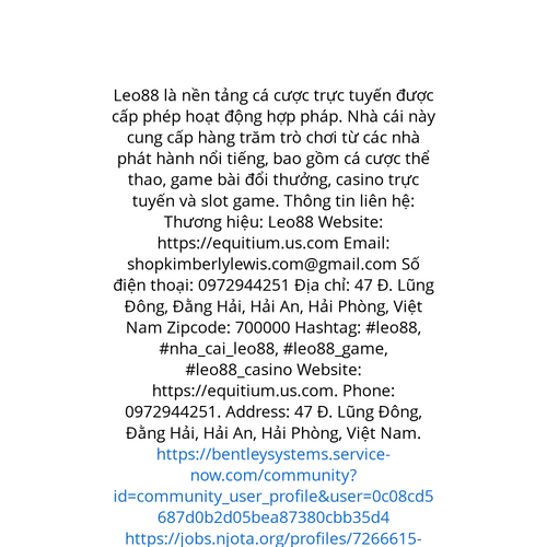 Website: https://equitium.us.com. Leo88 là nền tảng cá cược trực tuyến được cấp phép hoạt động hợp pháp. Nhà cái này cung cấp hàng trăm trò chơi từ các nhà phát hành nổi tiếng, bao gồm cá cược thể thao, game bài đổi thưởng, casino trực tuyến và slot
