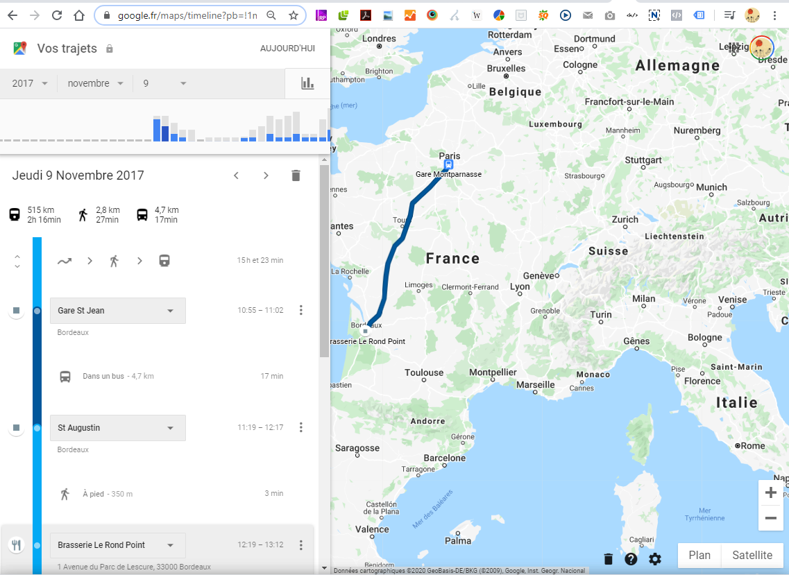 Si vous utilisez gmail sur votre smartphone et que vous n'avez pas désactiver le suivi de localisation vous trouverez tous vos déplacement sur