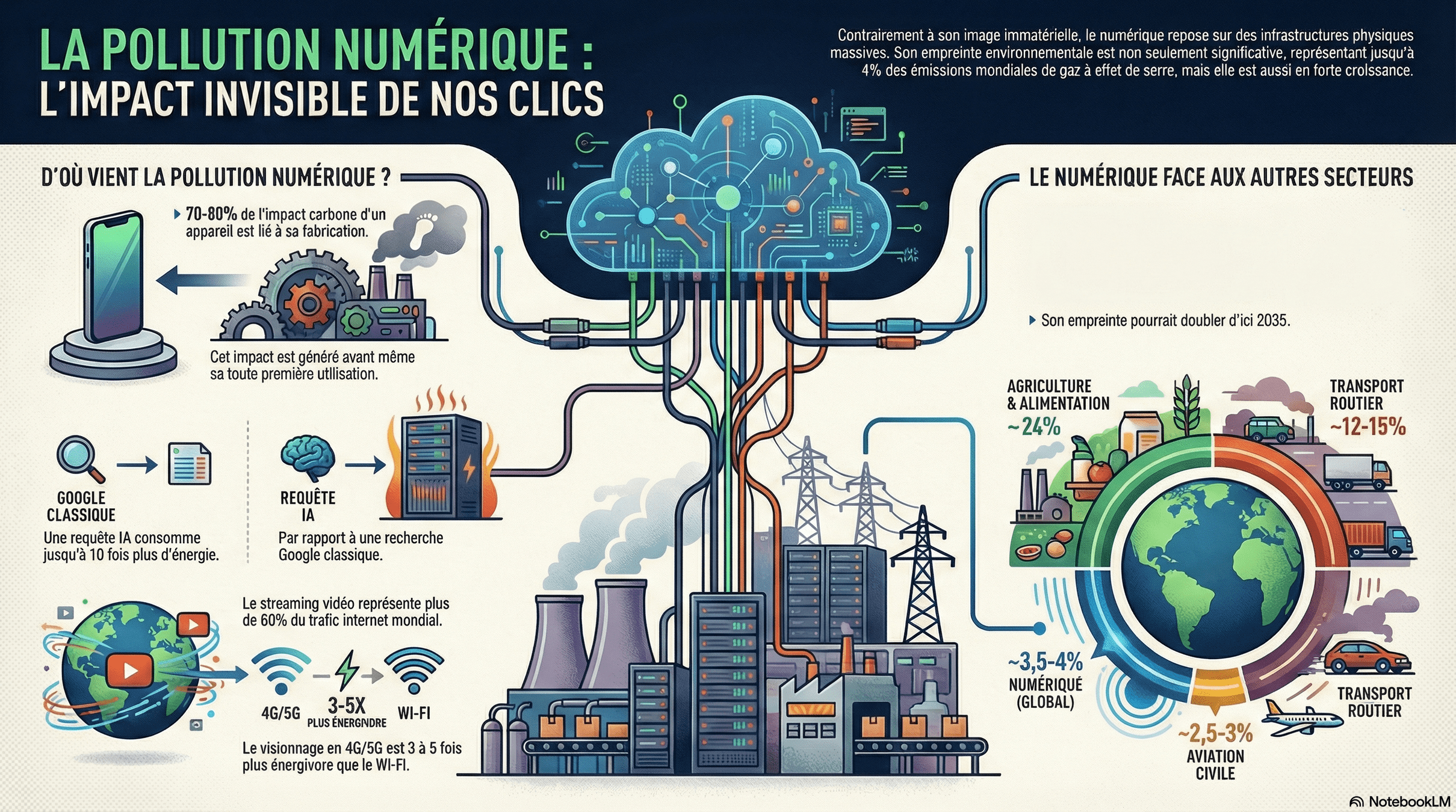 Internet est l'infrastructure globale, un vaste réseau mondial d'ordinateurs et d'appareils interconnectés qui permet l'échange d'informations à l'échelle planétaire.