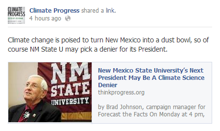 "Climate change is poised to turn New Mexico into a dust bowl, so of course NM State U may pick a denier for its President."