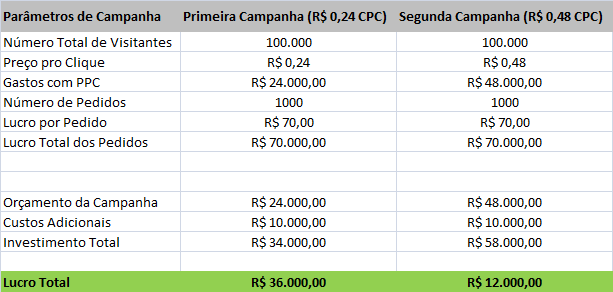 Assim sobraram R$ 60.000 para cobrir o custo de aquisição de visitantes.