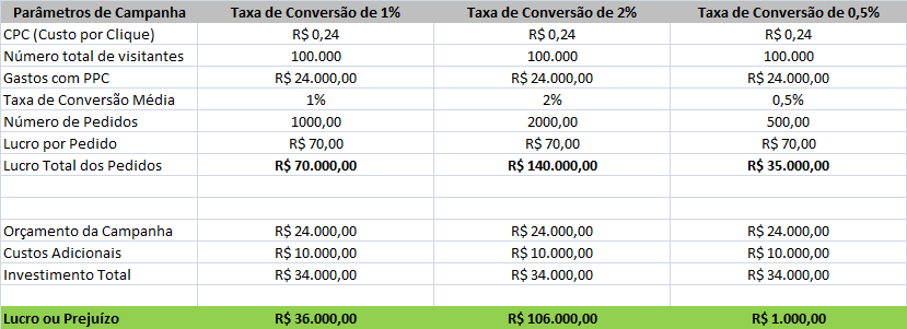 Saber quanta receita uma conversão gera para determinar o orçamento de uma campanha.