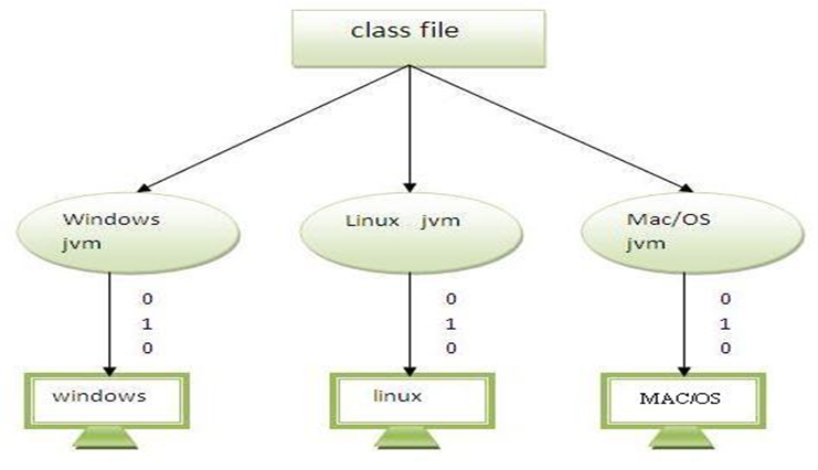 - JAVA code can run on multiple platforms(Windows, Linux, etc.)