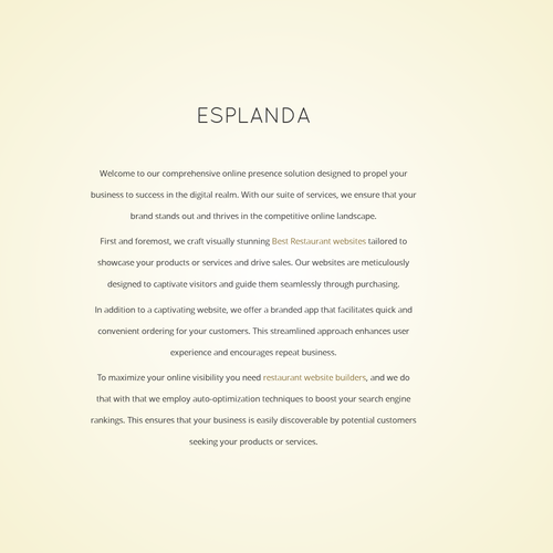 Welcome to our comprehensive online presence solution designed to propel your business to success in the digital realm. With our suite of services, we ensure that your brand stands out and thrives in the competitive online landscape.