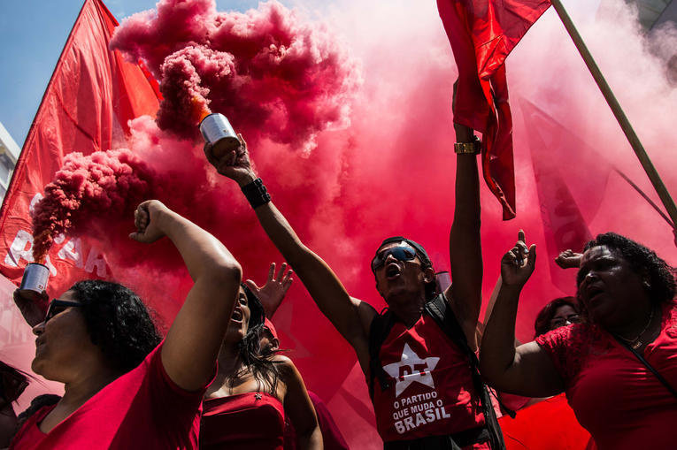 06/03/2016, Rio de Janeiro, des supporters du Parti des travailleurs manifestent - Christophe Simon / AFP