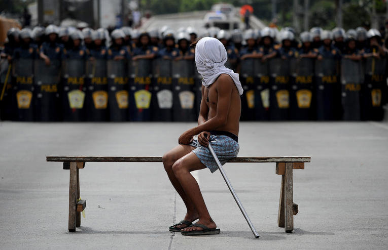 09/03/2016, Manille, un habitant des bidonvilles fait face à l'armée - Noël Celis / AFP