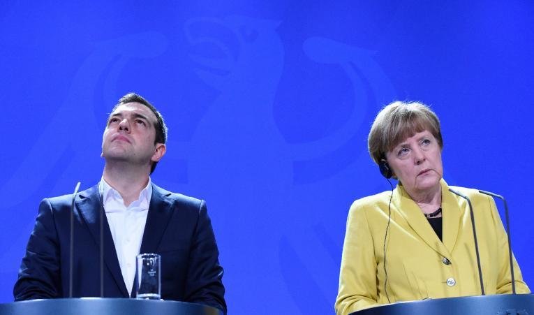 23/03/2015, conférence de presse à Berlin, avec le premier ministre grec Alexis Tsipras et la chancelière allemande Angela Merkel - Tobias Schwarz / AFP