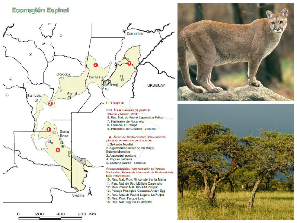 Clima: El clima es, en razón de la extensión de la región, extremadamente variable, a saber: cálido y húmedo en el norte, templado y seco con marcados déficits hídricos, hacia el oeste y sur. El espinal se puede dividir en tres sub-regiones, a saber: Espinal del Ñandubay, el mesopotámico, de clima húmedo; el de los Algarrobos, el sector central, subhúmedo, de transición entre la Pampa y el Chaco; y finalmente, el del Caldén, sector semiárido, de transición entre la Pampa y el Monte.