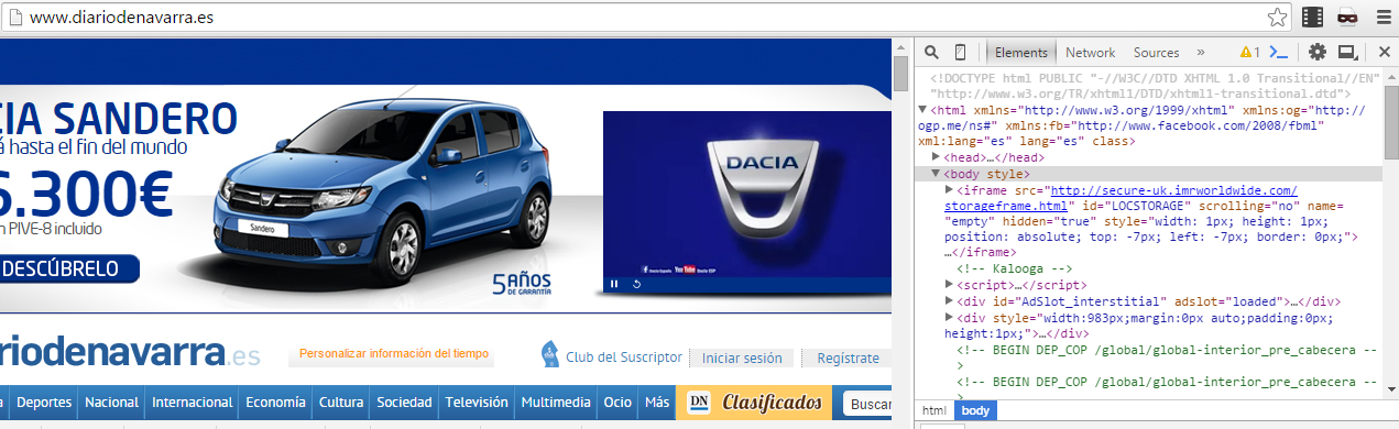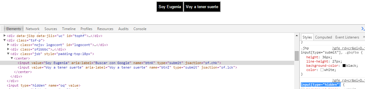 La inspección del elemento (F12, Ctr.+Shift+l):
