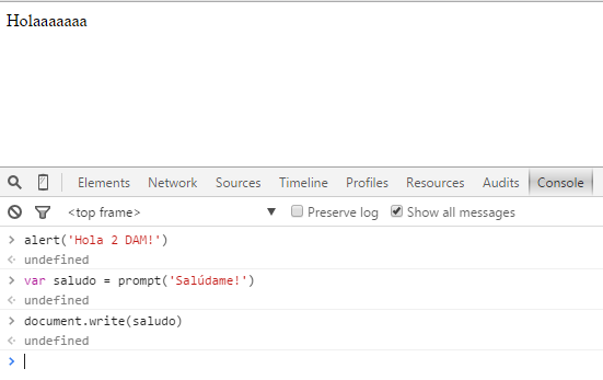 La pestaña Console: