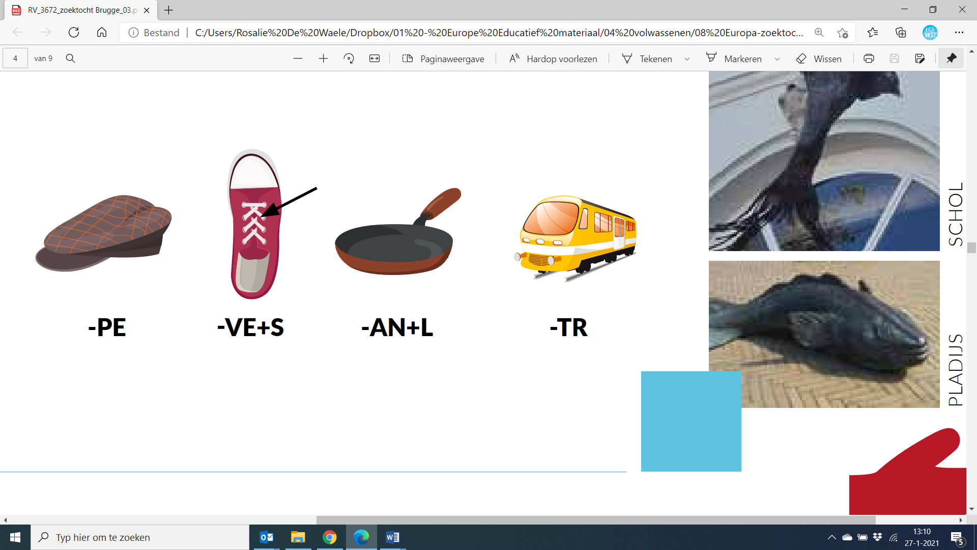 B. Spanje (schrap letter X)