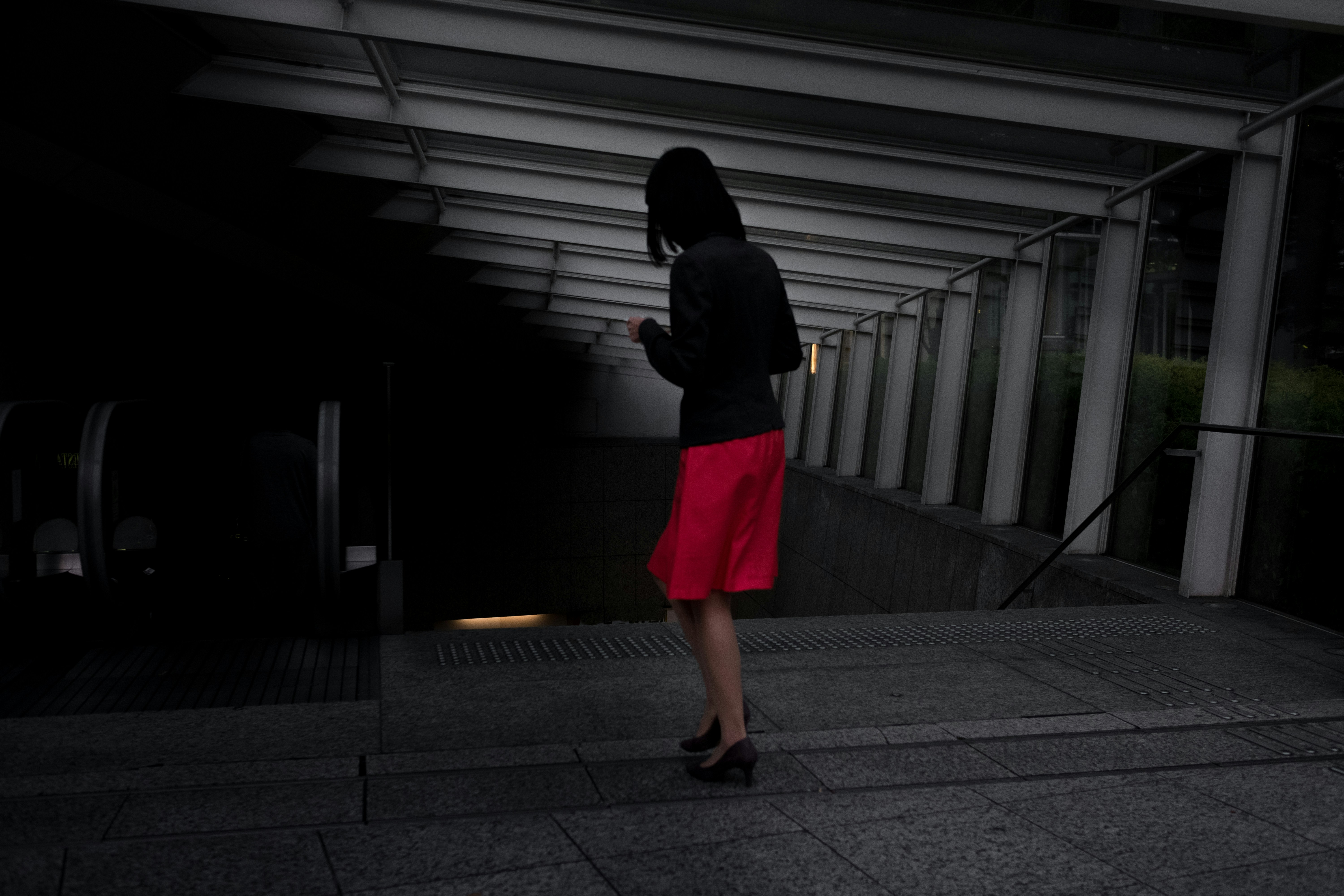 她穿黑色的衣服。