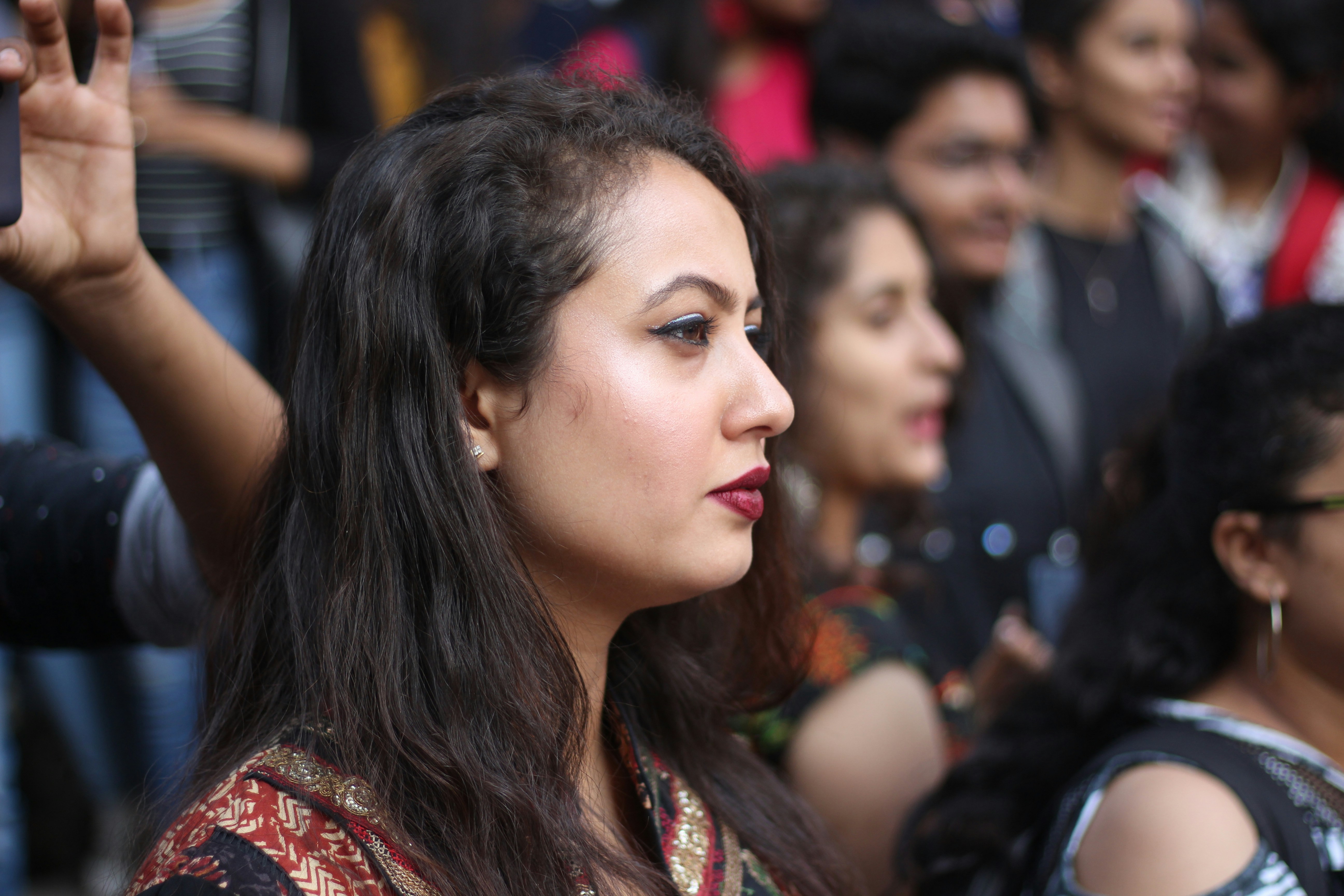 太吵了,我听不见她在说什么。