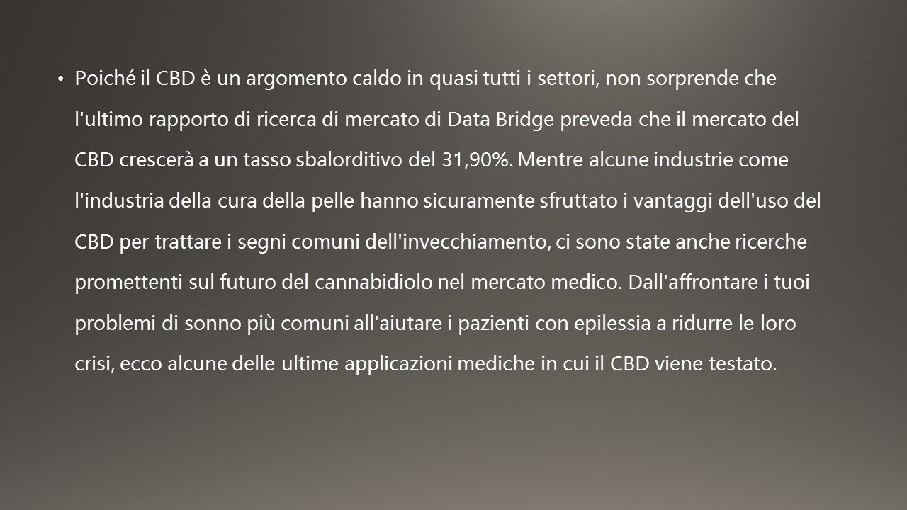 Poiché il CBD è un argomento caldo in quasi tutti i settori, non sorprende che l'ultimo rapporto di ricerca di mercato di Data Bridge preveda che il mercato del CBD crescerà a un tasso sbalorditivo del 31,90%. Mentre alcune industrie come l'industria della cura della pelle hanno sicuramente sfruttato i vantaggi dell'uso del CBD per trattare i segni comuni dell'invecchiamento, ci sono state anche ricerche promettenti sul futuro del cannabidiolo nel mercato medico. Dall'affrontare i tuoi problemi di sonno più comuni all'aiutare i pazienti con epilessia a ridurre le loro crisi, ecco alcune delle ultime applicazioni mediche in cui il CBD viene testato.