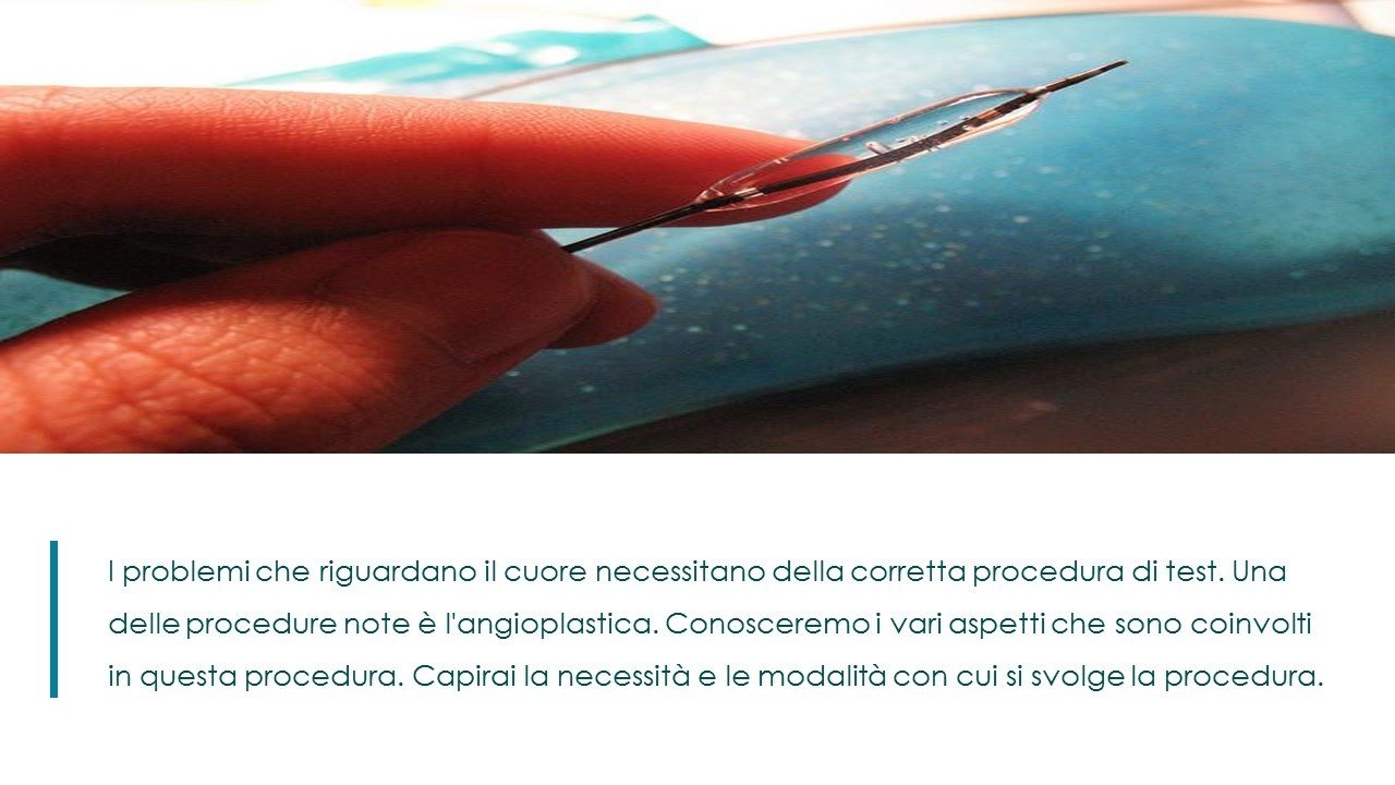 I problemi che riguardano il cuore necessitano della corretta procedura di test. Una delle procedure note è l'angioplastica. Conosceremo i vari aspetti che sono coinvolti in questa procedura. Capirai la necessità e le modalità con cui si svolge la procedura.