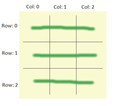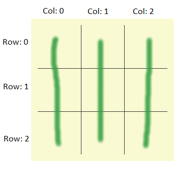 Каждую итерацию инкрементировать счетчики колонки и строки