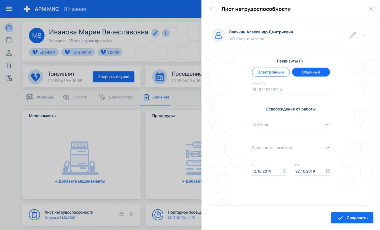 Арм.Терапевта - ИС в которой врач может выполнять все необходимы для работы операции.