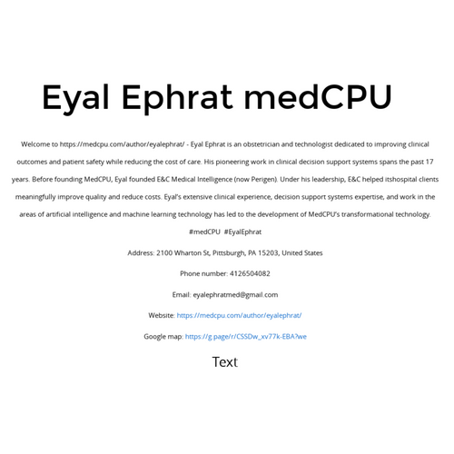 https://medcpu.com/author/eyalephrat/ Before medCPU, Dr. Ephrat founded and served as CEO of PeriGen #medCPU #EyalEphrat