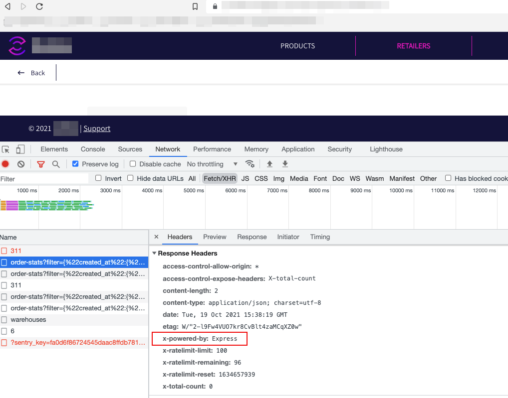 - CORS misconfiguration - allowing untrusted domain to access the API