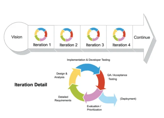 - It works by breaking projects down to little bits of USER functionality, called User Stories, prioritizing them, and continuously delivering them in a short week cycle iterations