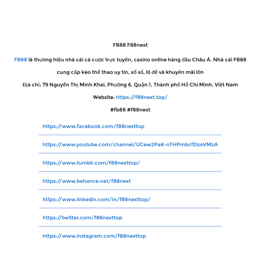 FB88 là thương hiệu nhà cái cá cược trực tuyến, casino online hàng đầu Châu Á. Nhà cái FB88 cung cấp kèo thể thao uy tín, xổ số, lô đề và khuyến mãi lớn Địa chỉ: 79 Nguyễn Thị Minh Khai, Phường 6, Quận 1, Thành phố Hồ Chí Minh #fb88 #f88next