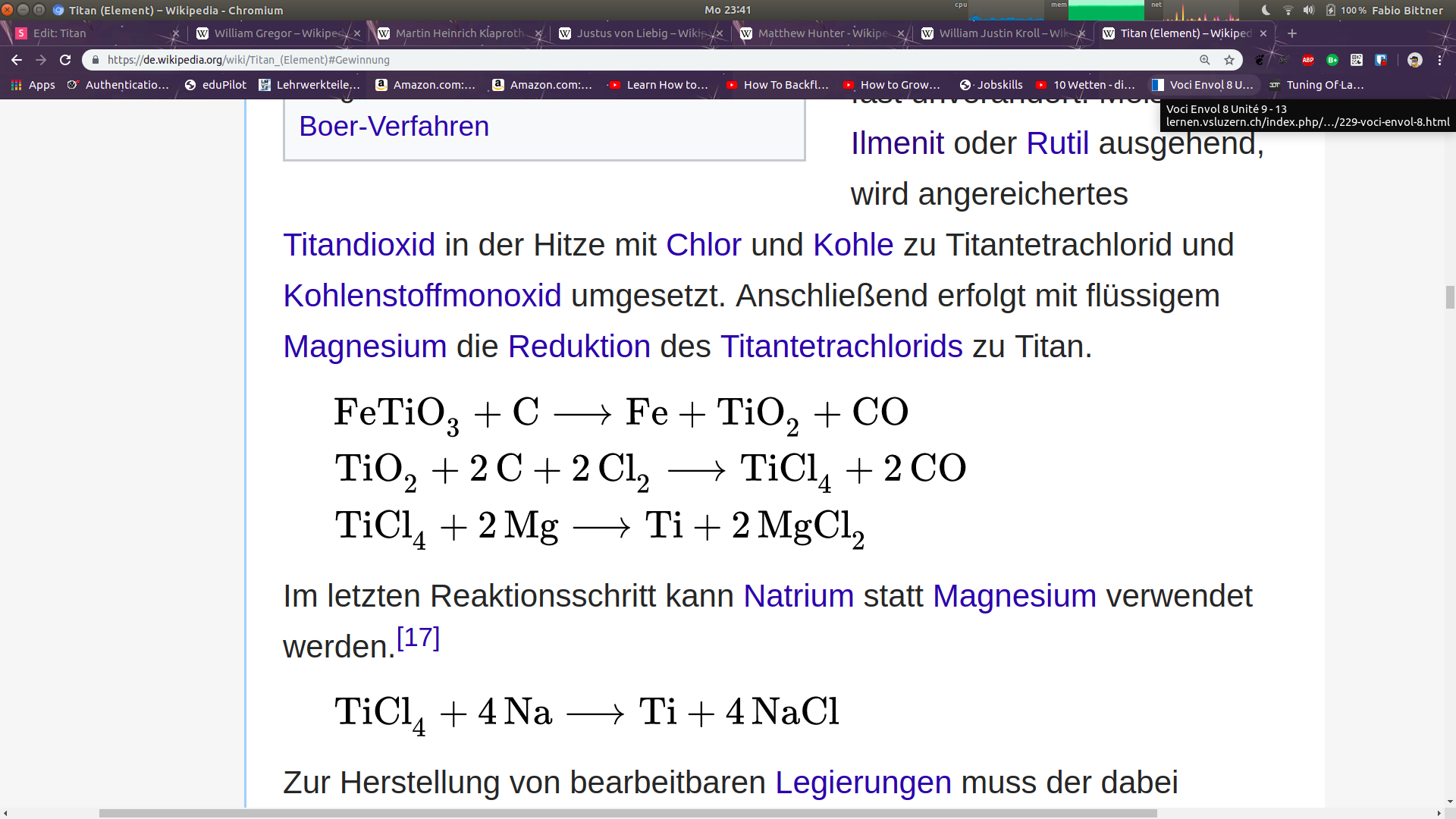 1831 Erste Gewinnung von metallischem Titan aus dem Erz (Justus von Liebig)