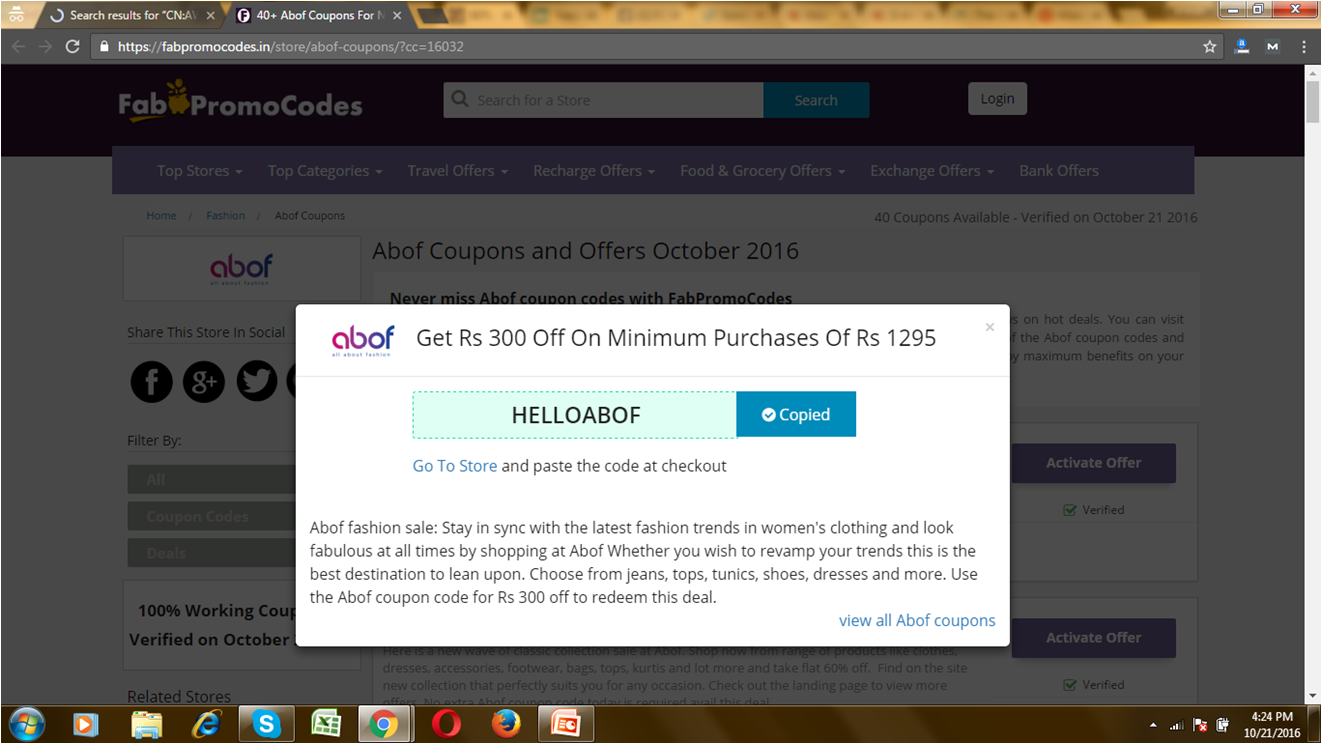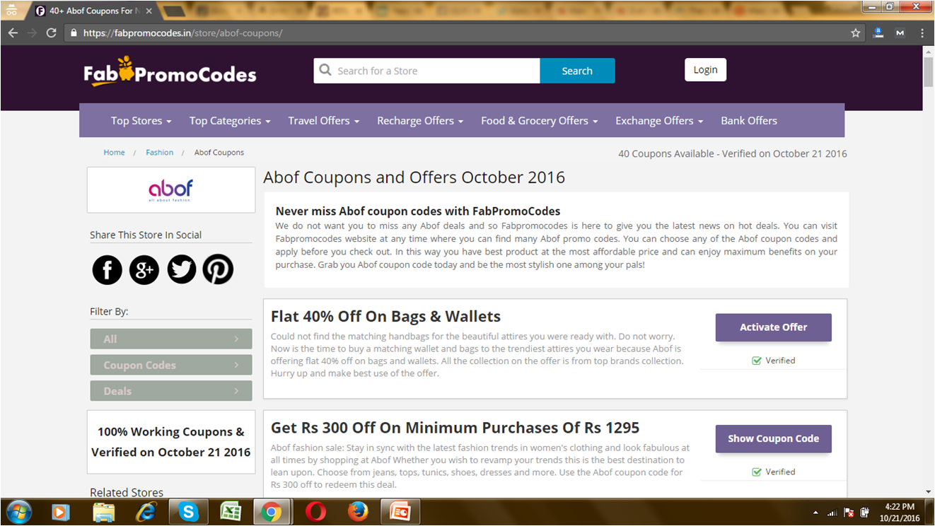 Get discounts with coupons and promo codes for thousands of online stores with Fabpromocodes.in. Shop here with trending deals and save big Money on Online shopping at single affable place.