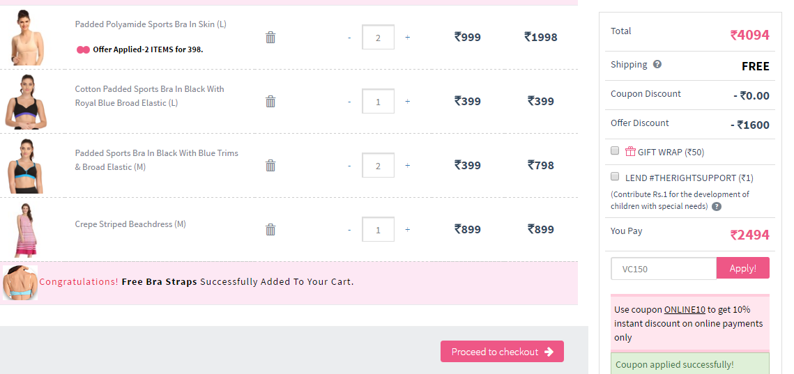 Now, after select your Lingerie Items then click to proceed button after payment gateway page will display Select the offer codes option and pasting the Copied Coupon Code in the box present at the Right side below and avail the offer.That’s it! Enjoy with cashback on online shopping.