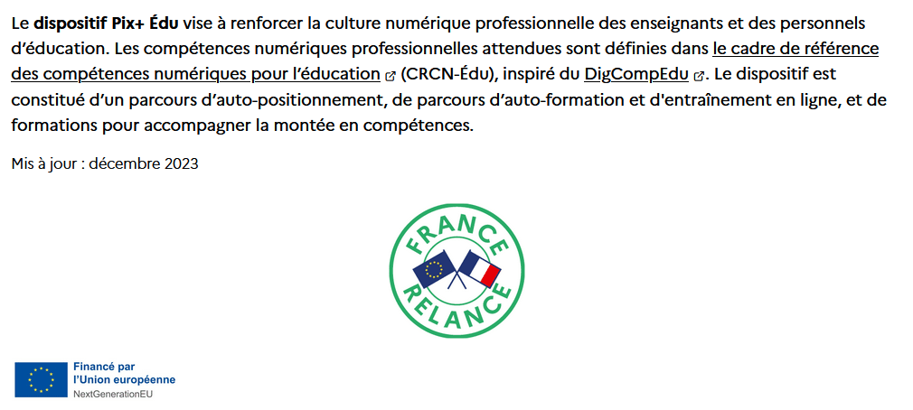 Pix+Édu - D3 Enseignement-apprentissage avec et par le numérique : VBRFRB749 Pix+Édu - D4&D5 Diversité, autonomie ; compétences numériques des élèves : GRUAPC894