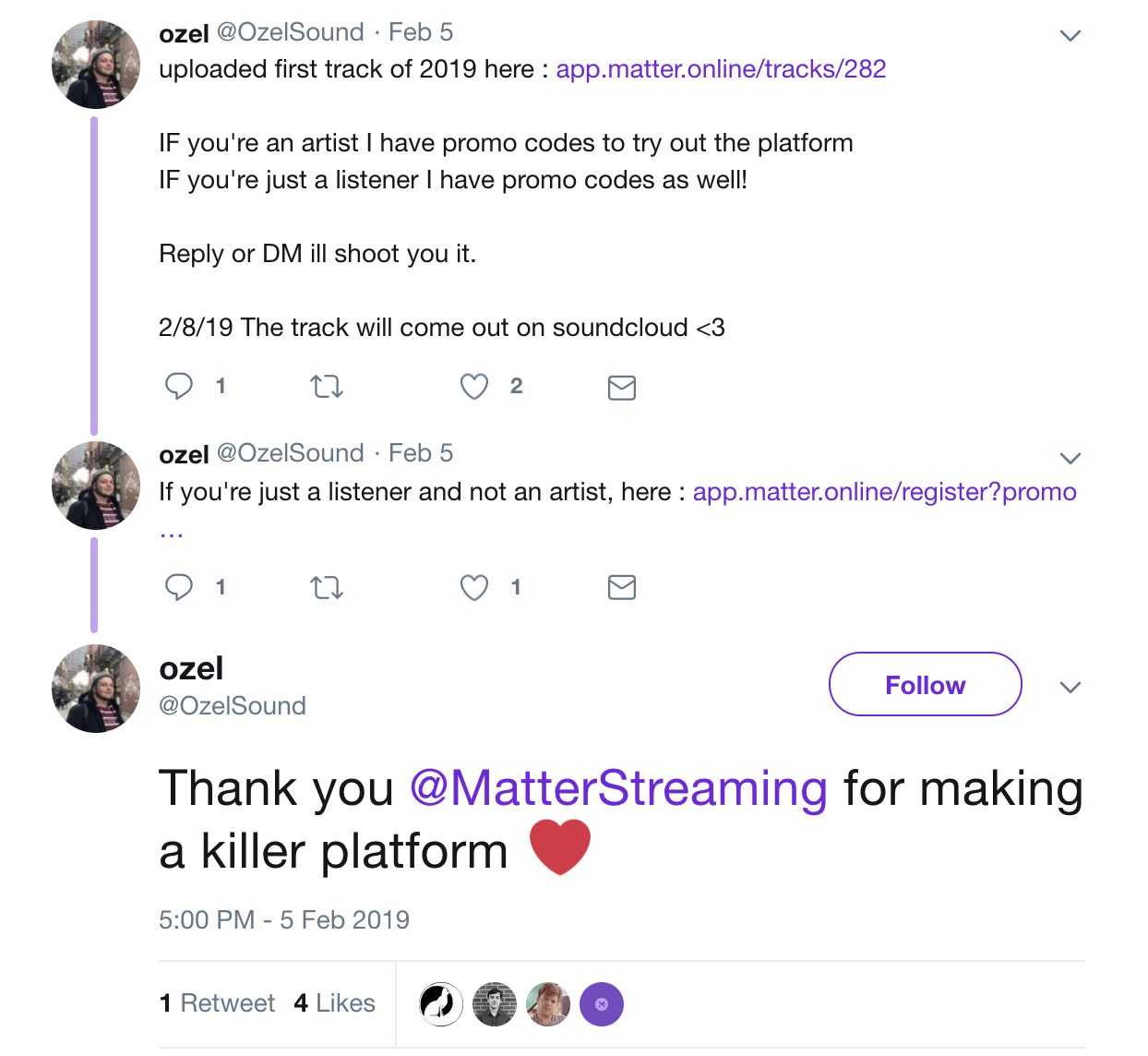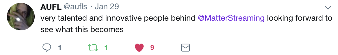 Making artist to listener engagement frictionless, Matter is positioned to dominate the global streaming market of the 2020's.