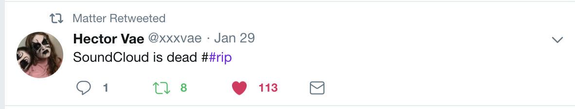5. “The SoundCloud You Loved Is Doomed | Pitchfork.” Accessed February 2, 2019. https://pitchfork.com/thepitch/the-soundcloud-you-loved-is-doomed/.