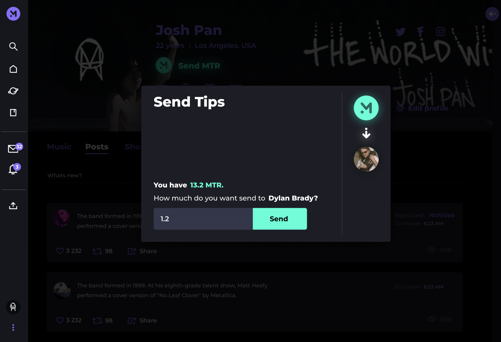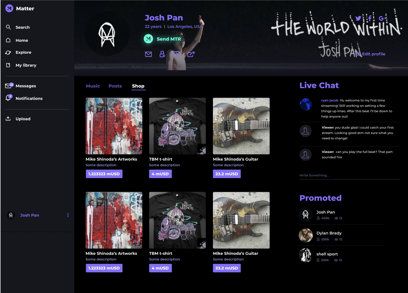 Matter provides the solution for artists to instantly sell to their biggest fans while avoiding click falloff. In the marketplace, they can offer goods such as merchandise, tickets, beats, and gear. As well as creative services such as mixing, mastering, features, and cover art.