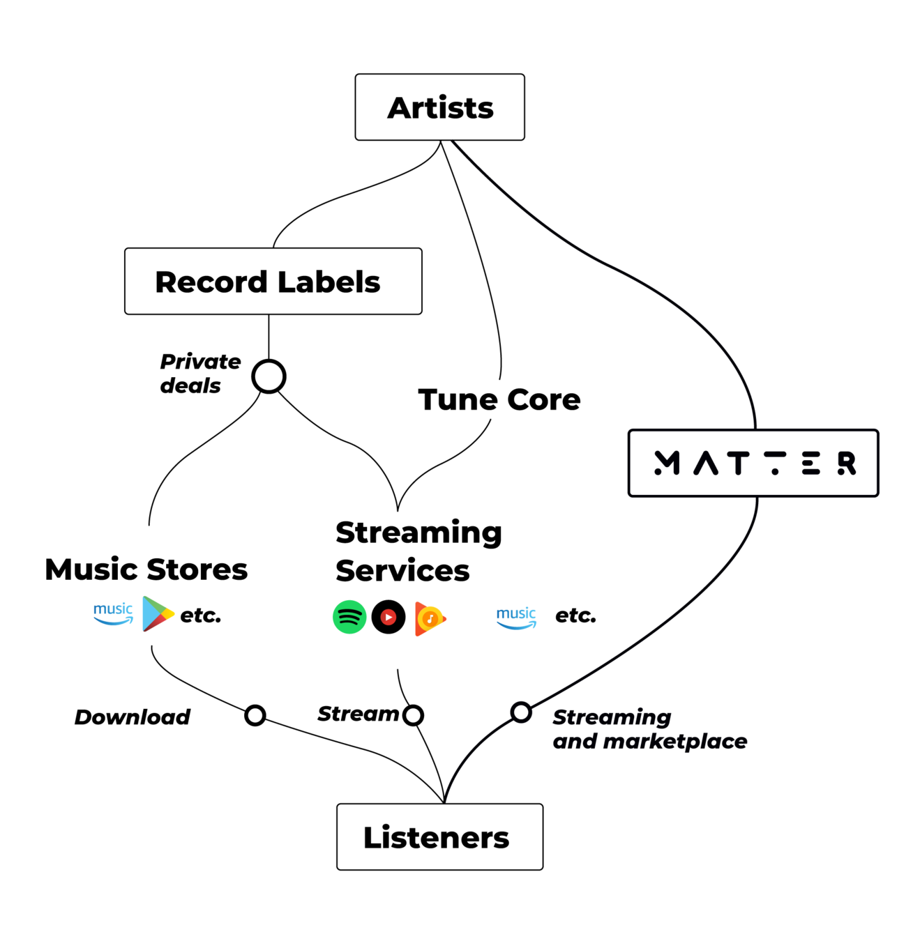 - Platform's do not offer artists opportunities to interact with fans and make money from their interactions