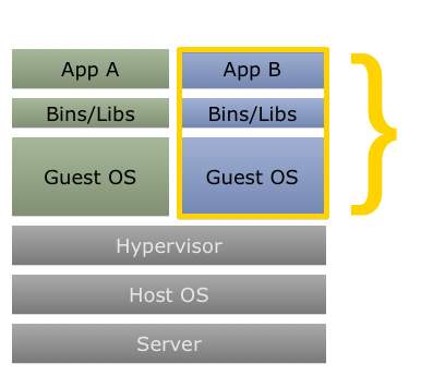 - One whole copy of OS runs inside each VM.