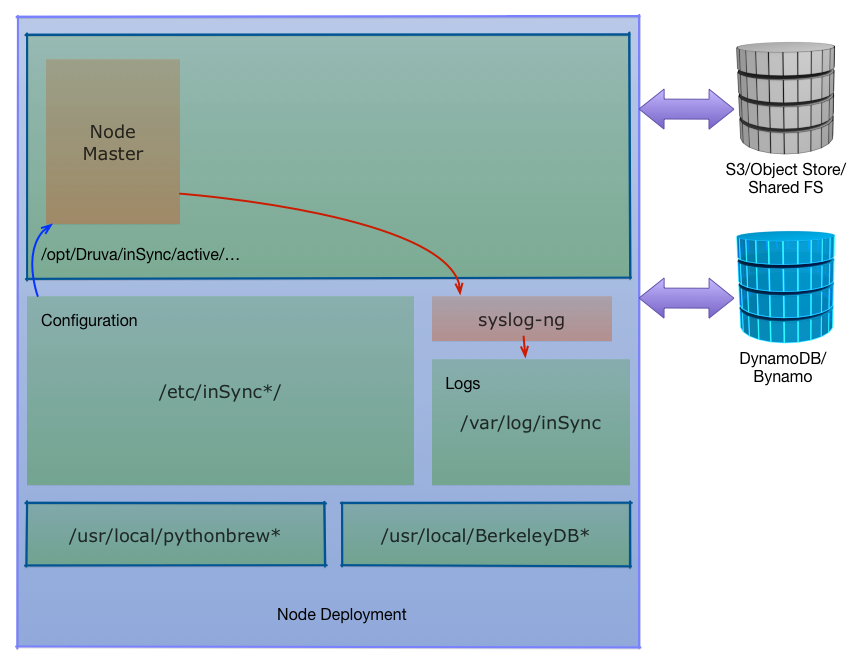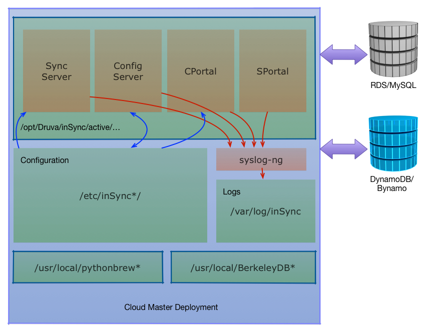 - Apps log to syslog-ng, which then log to /var/log/inSync and also remote logger service